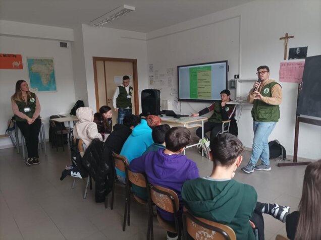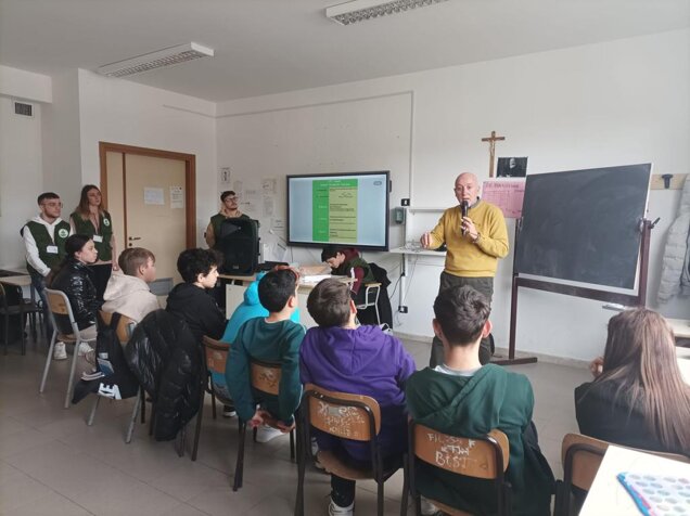 Nel primo incontro abbiamo conosciuto i ragazzi della terza media dell'Istituto Nicolini Di-Giacomo, presentando la nostra associazione su tutti i fronti, abbiamo fatto comprendere cosa significa il volontariato e l'importanza di iniziative benefiche,sociali e culturali. Attraverso dei video interattivi ci siamo soffermati sull'importanza di ridurre lo spreco alimentare anche con dei piccoli gesti nel quotidiano da parte di tutti. A tal proposito abbiamo spiegato ai ragazzi cos'è il Banco Alimentare, essendo la nostra Associazione una struttura caritatevole, e cosa significa preparare aiuti alimentari per famiglie in difficoltà. Inoltre gli abbiamo mostrato e spiegato cosa sono i prodotti FEAD (fondo di aiuti europei agli indigenti) e i prodotti TMC (Termine Minimo di Conservazione).