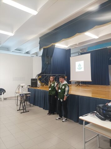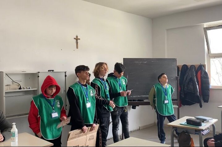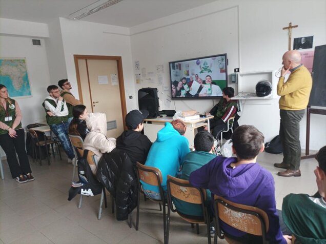 In questo primo incontro abbiamo avuto un feedback positivo da parte dei ragazzi, che hanno interagito molto con noi, rispondendo a quiz e facendo domande. Li abbiamo salutati lasciandogli un compito, quello di "creare uno slogan" per la colletta alimentare che si svolgerà all’interno della scuola.