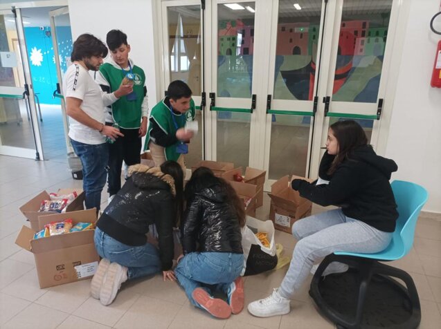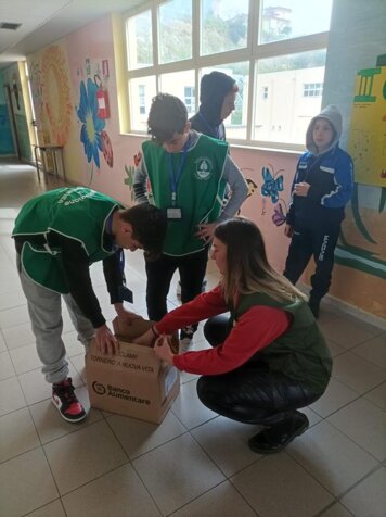 Nel giorno dell’incontro gli studenti insieme ai volontari dell’ Assocazione si sono divisi in gruppi e hanno raccolto i cesti nelle varie classi e diviso gli alimenti per tipologia, infine hanno chiuso tutti i pacchi alimentari, caricato le macchine e i volontari dell’Associazione hanno portato in sede per poi essere donati a Case Famiglia e Associazioni.