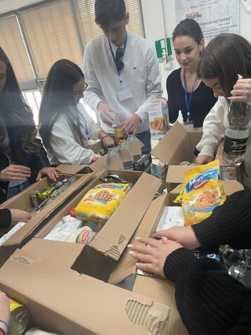 Nel giorno dell’incontro gli studenti insieme ai volontari dell’ Associazione hanno raccolto i cesti e diviso gli alimenti per tipologia, infine hanno chiuso tutti i pacchi alimentari, caricato le macchine e i volontari dell’Associazione hanno portato in sede per poi essere donati a Case Famiglia.