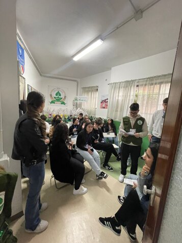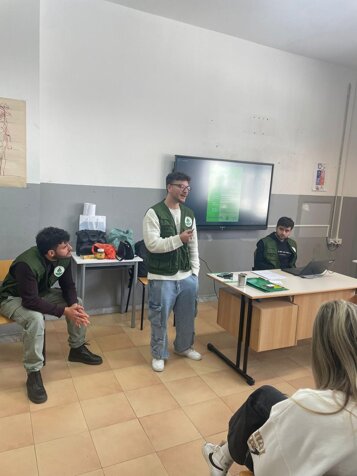 Nel primo incontro abbiamo conosciuto i ragazzi della terza superiore dell'Istituto I.S.I.S. Enrico Caruso, abbiamo presentato l'iniziativa e la nostra associazione su tutti i fronti, abbiamo fatto comprendere cosa significa il volontariato e l'importanza di iniziative benefiche,sociali e culturali inoltre ci sono state testimonianze di giovani volontari che spiegavano quali sono i motivi che li hanno spinti a far parte di una associazione. Dopodiché attraverso dei video interattivi ci siamo soffermati sull'importanza di ridurre lo spreco alimentare e non solo anche con dei piccoli gesti nel quotidiano da parte di tutti che molte volte posso sembrare scontati . Inoltre gli abbiamo mostrato e spiegato cosa sono i prodotti FEAD (fondo di aiuti europei agli indigenti) e i prodotti TMC (Termine Minimo di Conservazione). A tal proposito abbiamo spiegato ai ragazzi cos'è il Banco Alimentare, essendo la nostra Associazione una struttura caritatevole, e cosa significa preparare aiuti alimentari per famiglie in difficoltà.